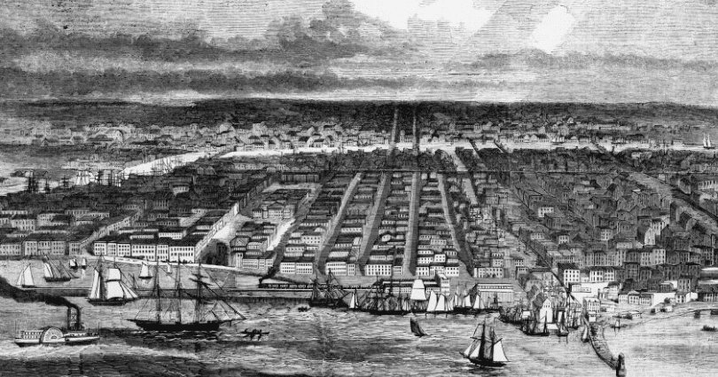 Chicago also had a strong reputation as a center of abolitionist activity. Local abolitionists ranged from formerly enslaved people to evangelical Christians. Before his famous raid on Harpers Ferry in 1859, John Brown and his fellow abolitionists stayed at the home of John Jones, a wealthy Black tailor. Organizations like the Chicago Anti-Slavery Society and the Chicago Female Anti-Slavery Society worked closely with religious abolitionist groups. In 1862, several local churches even sent a delegation to President Lincoln to urge him to implement a policy of emancipation. Many saw the city as a launchpad for Lincoln’s political career, and some even blamed Chicago for starting the war. The Chicago Tribune gained national prominence before the war and became one of the leading Republican newspapers of the era.